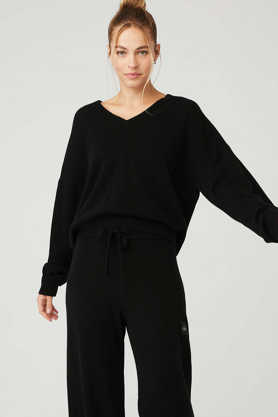 - V-neck with slouchy fit & fitted waist