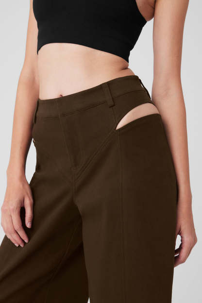 The cutout trend isn*t going anywhere, and the Risk Taker Trousers are the coolest way to get the look. Made from a drapey cotton-blend, they have dramatic wide legs, cool V-shaped front seams, and cutouts at the hips. The high-rise waistband hits at the navel and is stretchy in the back for a comfortable fit. The Risk Taker scores major versatility points〞they look equally chic with sneakers and spiky heels.