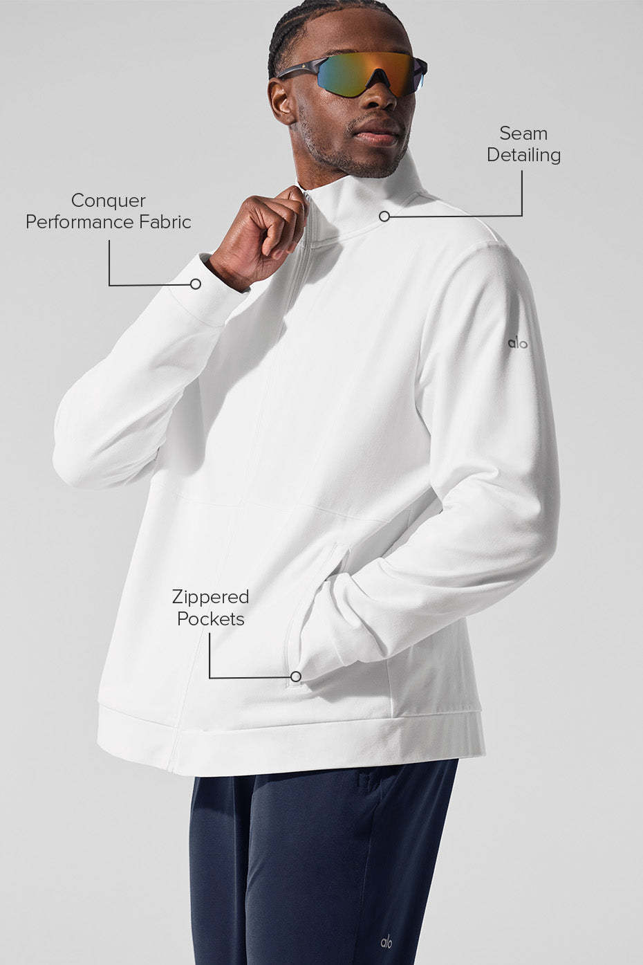 The Conquer Max Mock Neck Full Zip has you covered for all of your moves. Made of our signature Conquer performance fabric, this sleek style features a full zip and a mock neck that instantly takes any look to the next level.