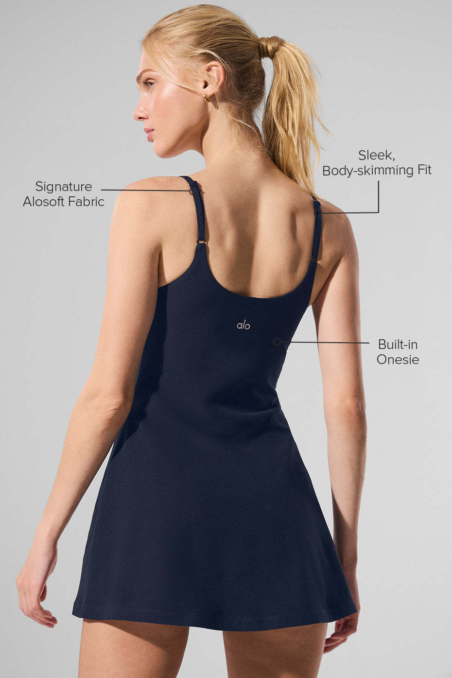 Ready, set, serve in the Alosoft Encore Tennis Dress. Made from our signature Alosoft fabric, this style has a minimalist silhouette and a built-in onesie for all-in-one ease, offering just the right amount of support, comfort, and stretch. Whether you’re hitting the court, the studio, or the sidewalk, this is your power-player piece.