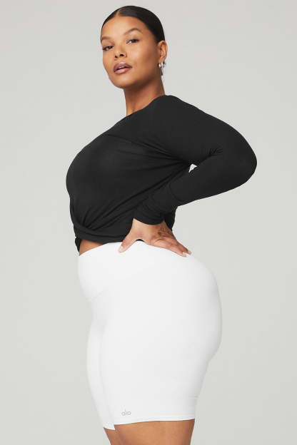 Prepare to walk the walk in the Cover Long Sleeve Top. The cropped slim fit silhouette, sweet front wrap detail and ribbed sleeves make it on-trend and on-point. Layer it over your favorite athelo bra for an easy, studio-to-street transition.