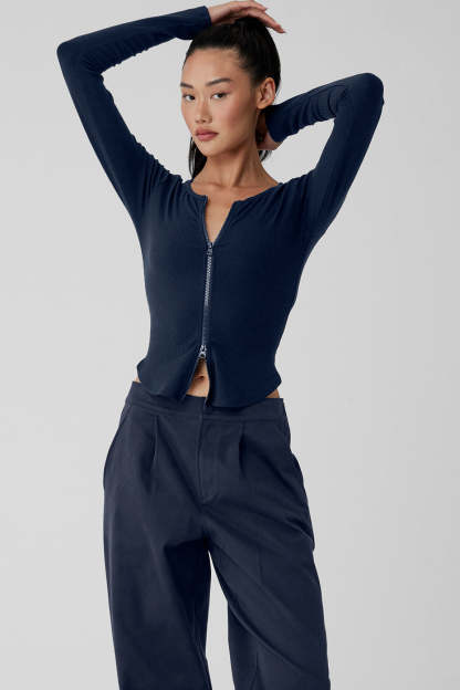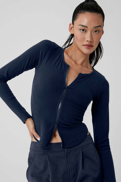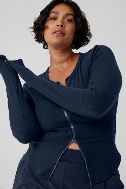 There are performance-ready jackets, and then there*s this 〞 the Ribbed Stardust Jacket. This versatile, fitted long sleeve in a fine, ribbed knit fabric gives boss vibes. A 2-way adjustable zipper, corset-inspired silhouette and close-to-body fit give this lightweight jacket versatility for layering, wearing solo, and bringing elevated energy to any occasion. Pair it up with trousers or sleek leggings for a major look.