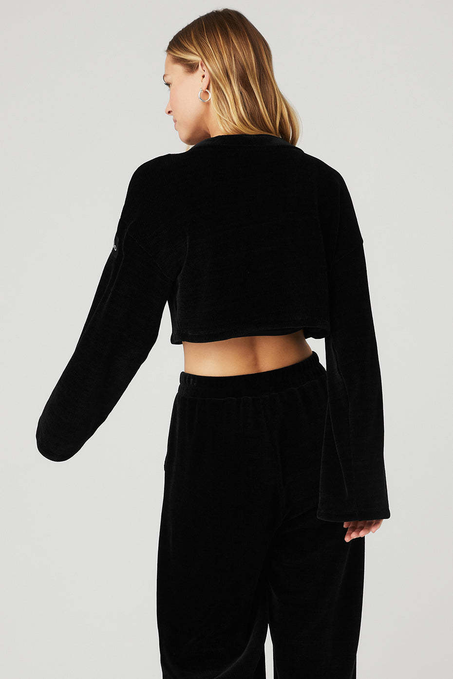 - True to size〞designed with a cropped fit and long bell sleeves