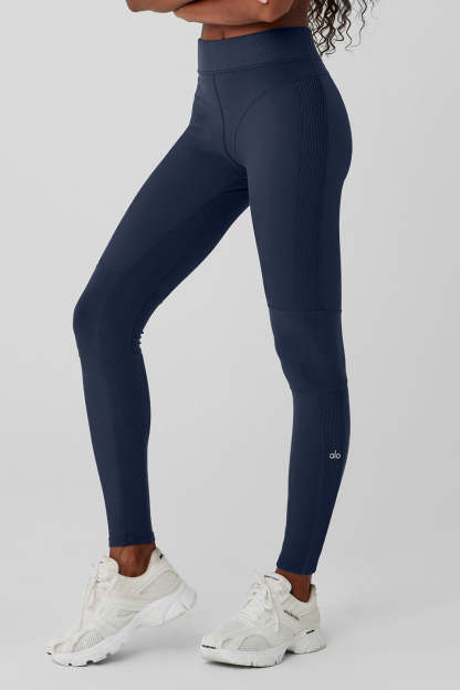 A subtle nod to the *80s, these leggings have coolly contrasting ribbed panels and bikini bottom seaming. We love the high-rise, full-length fit and the stretchy elastic waistband with a tonal athelo logo. And they*re done in athelosoft〞our coziest fabric with a buttery feel and a brushed finish. Complete the look with the matching athelosoft Head Start Bra.