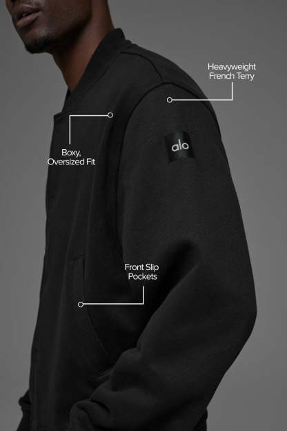 Designed for an oversized, bomber-style fit with a slightly cropped hem—size down if you prefer a closer fitComfy, heavyweight French terryRibbed cuffs and hem