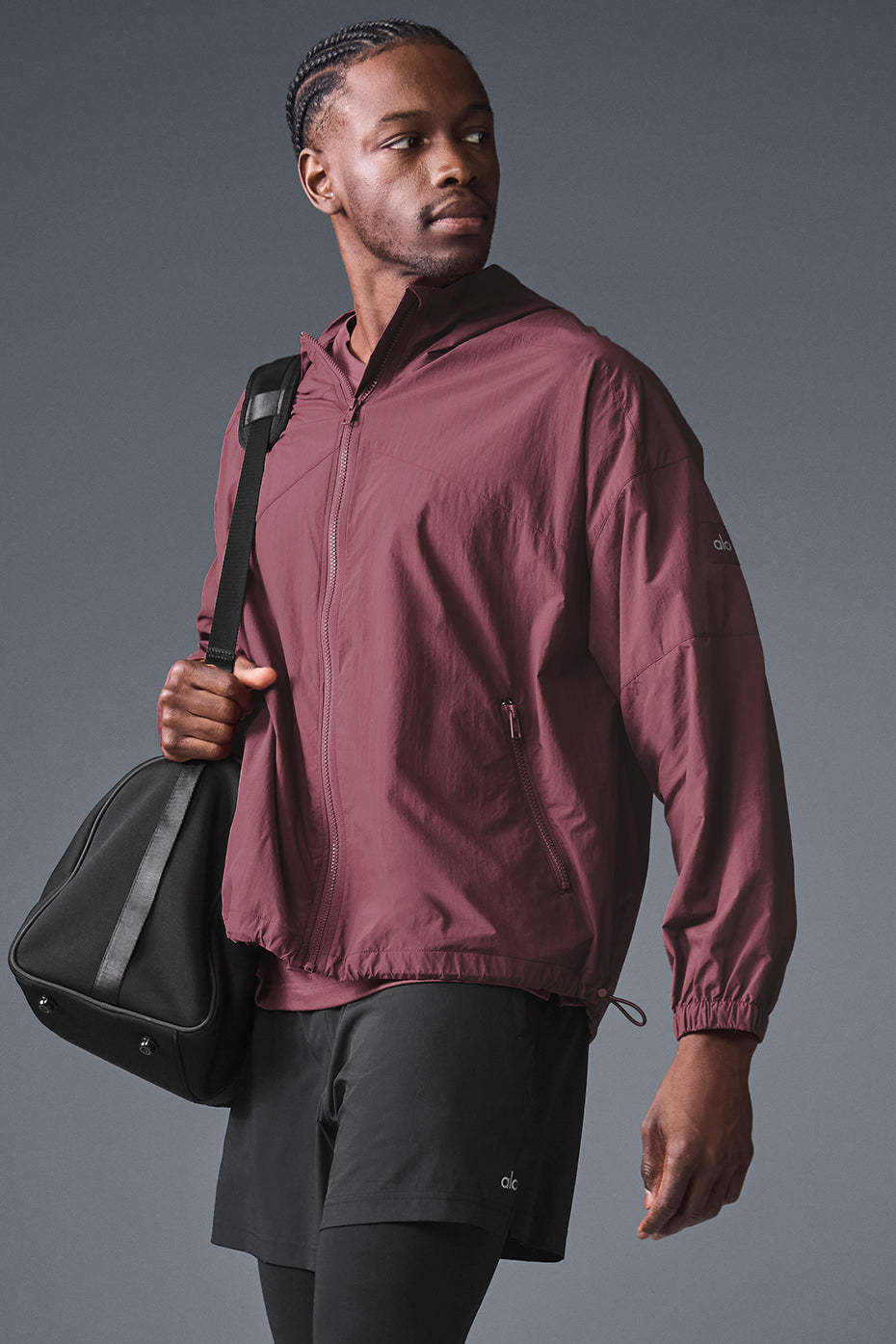 Light coverage and serious protection—that’s the Vantage Track Jacket. It has technical features like a structured hood, a full-zip front that covers the neck, cuffed sleeves, and a bungee hem that’s slightly longer in back. Fitwise, it feels cool and modern with dropped shoulders and a loose body. Wear it for running, training, or stepping outside in brisk weather.