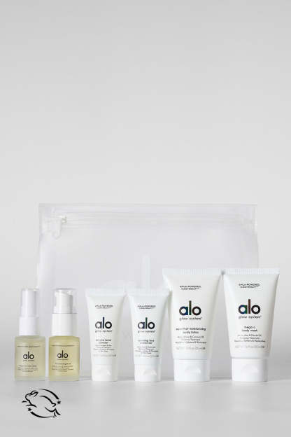Experience a supernatural glow and get obsessed with the ALO Glow System Discovery Set, a travel-ready collection of 6 Glow System products. Treat face and body to antioxidant- and vitamin C-packed formulas powered by amla and nature’s most potent botanical ingredients, for smoother-, clearer-, brighter-looking skin that glows from the inside out. Pop this gift-worthy kit in your carry-on, throw it in your gym bag or keep it within reach for glowy, dewy radiance.