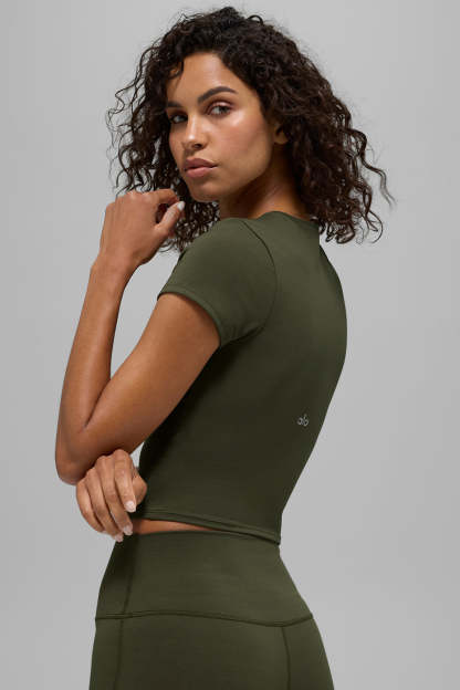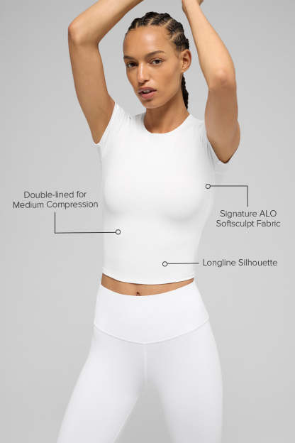The ALO Softsculpt Precision Short Sleeve Top is your new everyday essential. Designed with a sleek, body-hugging fit, this short-sleeved top pairs perfectly with your favorite leggings, skirts, or shorts. Soft, stretchy, and made to move, it’s the type of style that goes from studio flows to weekend plans without skipping a beat.