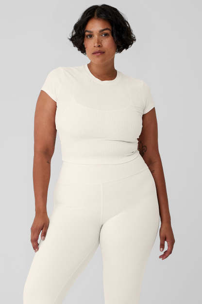 Ribbed Sea Coast Cropped Short Sleeve Tee