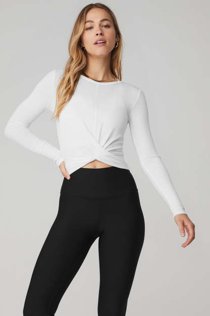 Prepare to walk the walk in the Cover Long Sleeve Top. The cropped slim fit silhouette, sweet front wrap detail and ribbed sleeves make it on-trend and on-point. Layer it over your favorite athelo bra for an easy, studio-to-street transition.