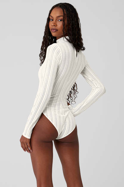 This stretchy, semi-sheer, pointelle bodysuit is primed for holiday party season. It has a curve-hugging fit, a mock neck, slightly high-cut legs and a keyhole cutout in back. Bonus points for the cheeky, panty-line-preventing cut and the convenient snap closure. Wear it with a tonal bralette underneath and your favorite jacket or blazer on top.
