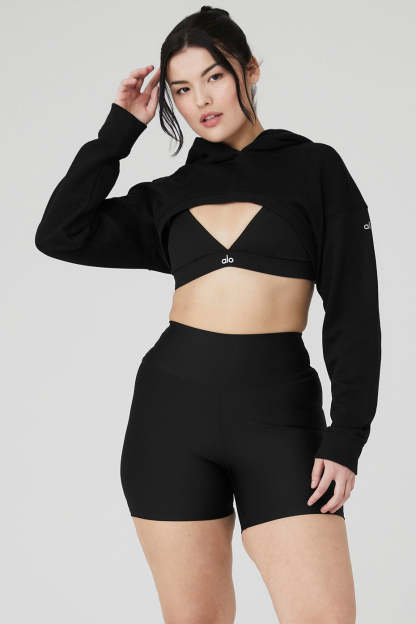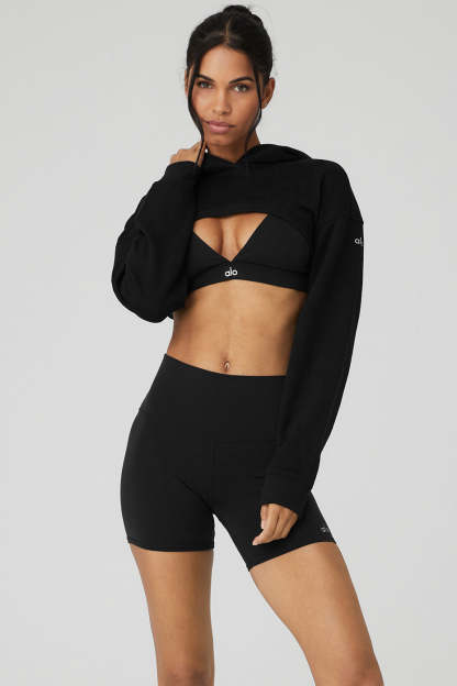 Breezy and super-soft to the touch. Meet the Cropped Shrug It Off Hoodie 〞 the just-right layering piece your closet deserves all year round. An ultra-cropped fit is perfect for showing off studio bras or bikinis on beach days, while the built-in hood provides protection when the weather shifts. Ribbed cuffs and hem are the finishing touches on this cozy, soon-to-be fave. Pair it up with sweat shorts for a complete look.