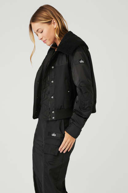 It*s going to get chilly, so don*t get caught out there without the Blaze Bomber. Cozy yet lightweight, with an oversized silhouette and so many handy pockets for securing the goods. A super-soft sherpa flap collar locks in warmth and takes this epic bomber up a notch.
