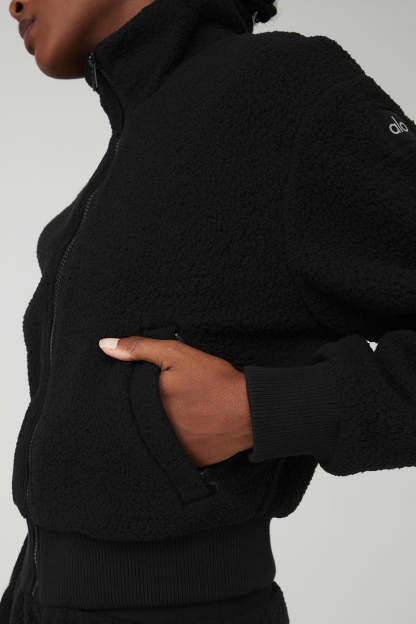 This cool, cropped coverup might be the coziest thing on the street. The Micro Sherpa Destiny Jacket keeps out the chill thanks to plush micro sherpa, a full zip, and ribbed detailing at cuffs and waistband. Zippered side pockets securely hold what you can*t on the go.